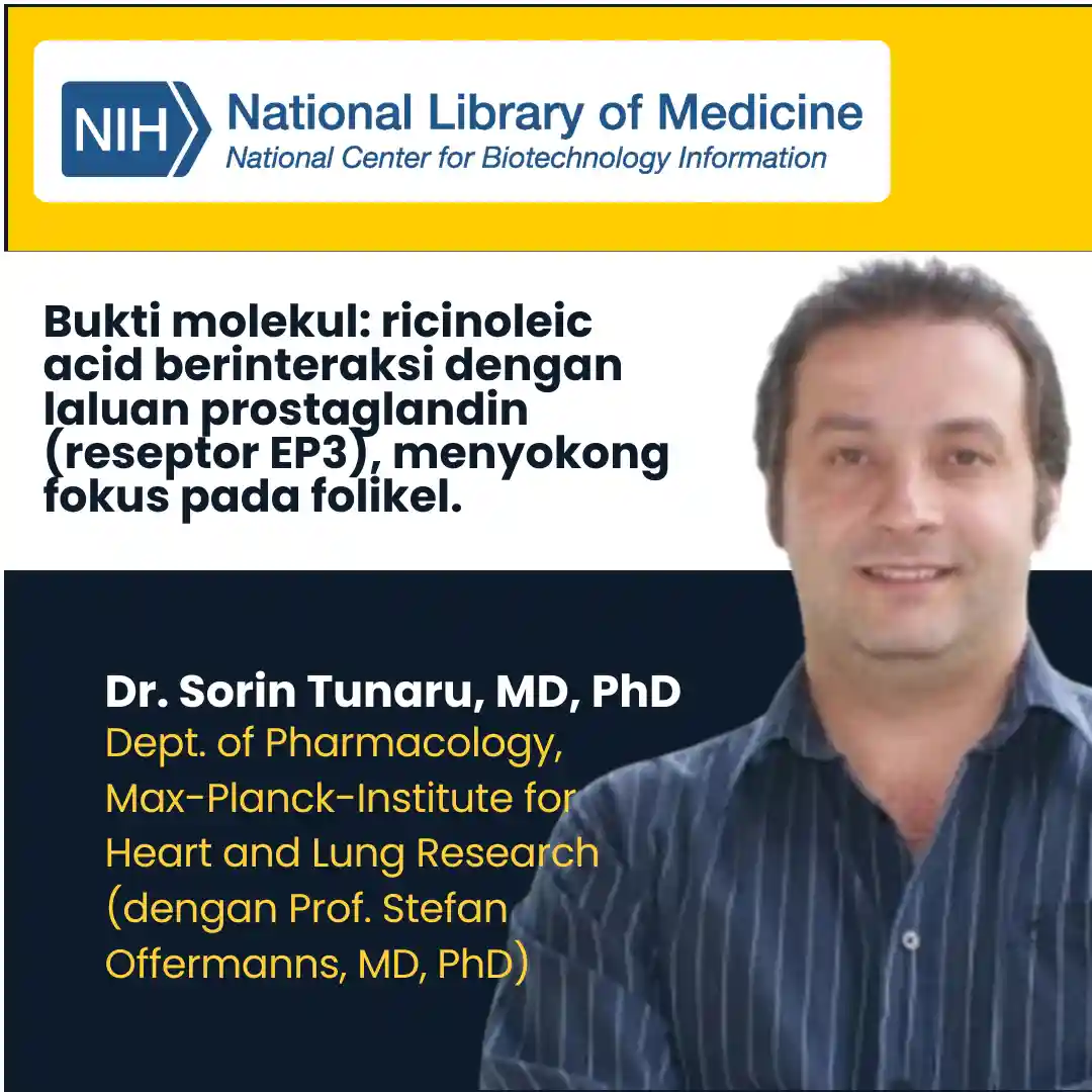 Ricinoleic acid (buah jarak) menyerap ke kulit kepala dan bantu ‘kejutkan’ akar yang berehat—permulaan kepada pertumbuhan anak rambut