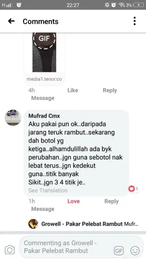 *Penafian: Growell adalah tonic rambut, bukan ubat hospital atau pengganti rawatan professional.